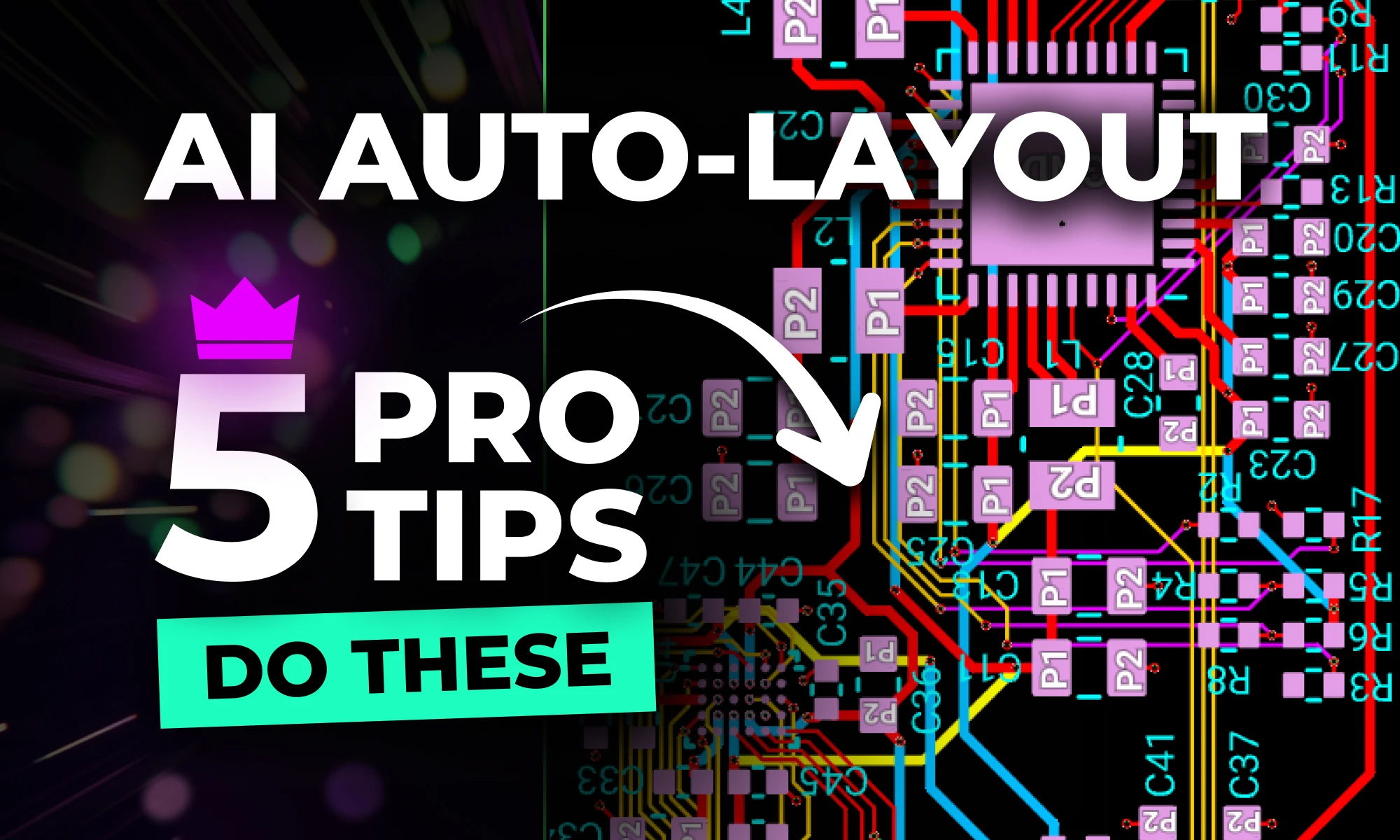 Learn five practical tips to improve PCB routing with AI Auto-Layout, including differential pairs, power traces, rule sets, zones, and convergence strategies.