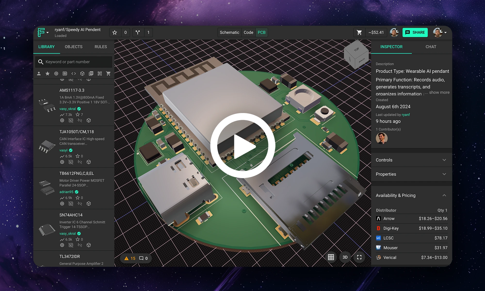 Discover how Copilot transforms hardware design from concept to creation through an end-to-end example of designing a webcam, showcasing the power of AI hardware design at every step.