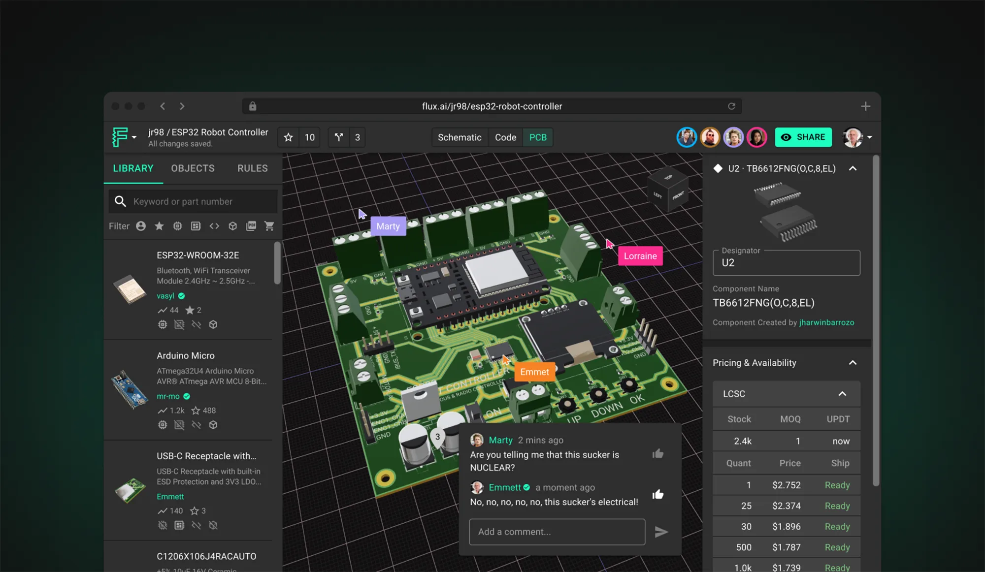 Today, we’re taking collaboration one step further by giving hardware teams a shared virtual space that’s built for innovation. Today, we’re launching Flux for Organizations: a new way for hardware teams to collaborate.