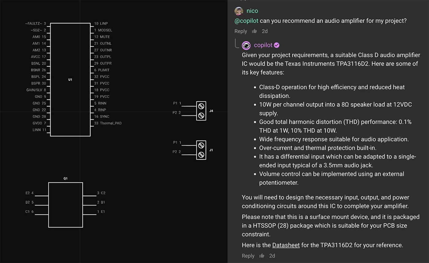 Hardware engineers don’t become hardware engineers to reference datasheets. They do it, we do it, to solve hard problems, to invent new things, to make hardware that makes a difference in people’s lives. So do the work that really matters, and let Copilot handle the rest.