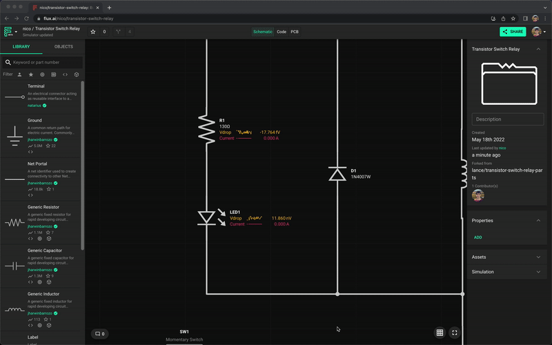 Circuit simulators are typically categorized into analog and digital types. Analog simulators, like SPICE (Simulation Program with Integrated Circuit Emphasis), model continuous signals, while digital simulators model circuits that have a number of discrete states. Some circuit simulators, like Flux's circuit simulator, operate directly in your EDA's schematic diagram. With an understanding of your netlist and schematic diagram, these simulators help verify the functionality of your system.